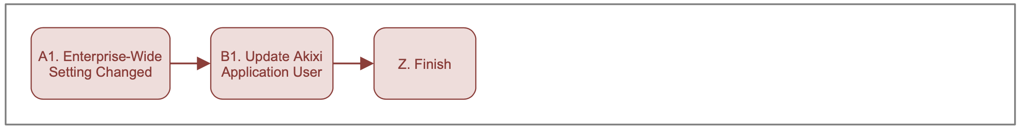 The existing Application User should be updated via a UserChange operation where the user is identified by specifying the extension user’s e-mail address within the Username Property. The PartIDInTelSys – Permissions Container Property should be appropriately updated based on the value of the “Enterprise-Wide Permissions” setting. A value of “All” should be used when the “Enterprise-Wide” setting is checked on, and when unchecked, the Property should be set to the associated PartIDInTelSys value stored against the owning Customer telephony environment that the configuration change was made within.