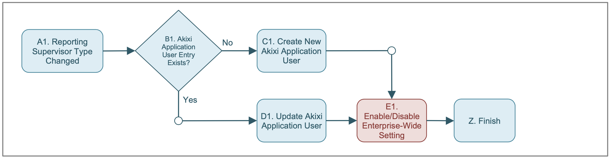 This step is only performed in integration scheme 1. If the “Reporting Supervisor Type” option is set to “None”, then the “Enterprise-Wide Permissions” setting should be dimmed (disabled), else the setting should be shown enabled (editable).