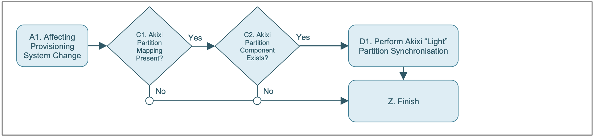 This covers multiple provisioning system update scenarios that can be automatically detected by the “light” Akixi Service Partition synchronisation mechanism, which should be subsequently invoked afterwards programmatically, in order that the corresponding changes can correctly be reflected within the Akixi Service configuration. To learn more about the Akixi