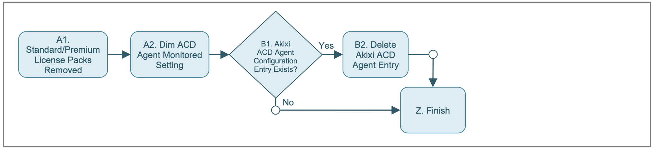 This case occurs when any operation performed within the external provisioning system culminates in a BroadWorks extension user having neither Standard nor Premium Call Centre license packs applied to them, where before the operation one or both of them was/were previously applied. Note that the application of the Basic Call Centre license pack should not be considered in this scenario and can effectively be ignored.